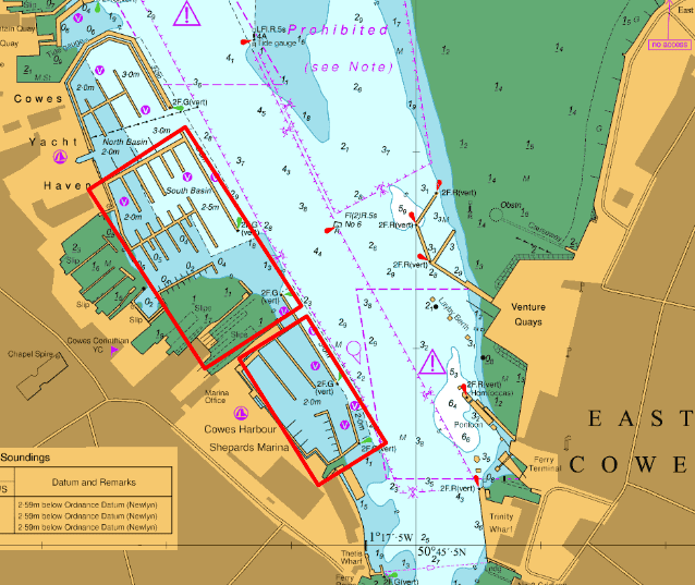 • Comply with the Cowes Harbour General Direction 3.2 – Speed Limit 6 knots and No Wash